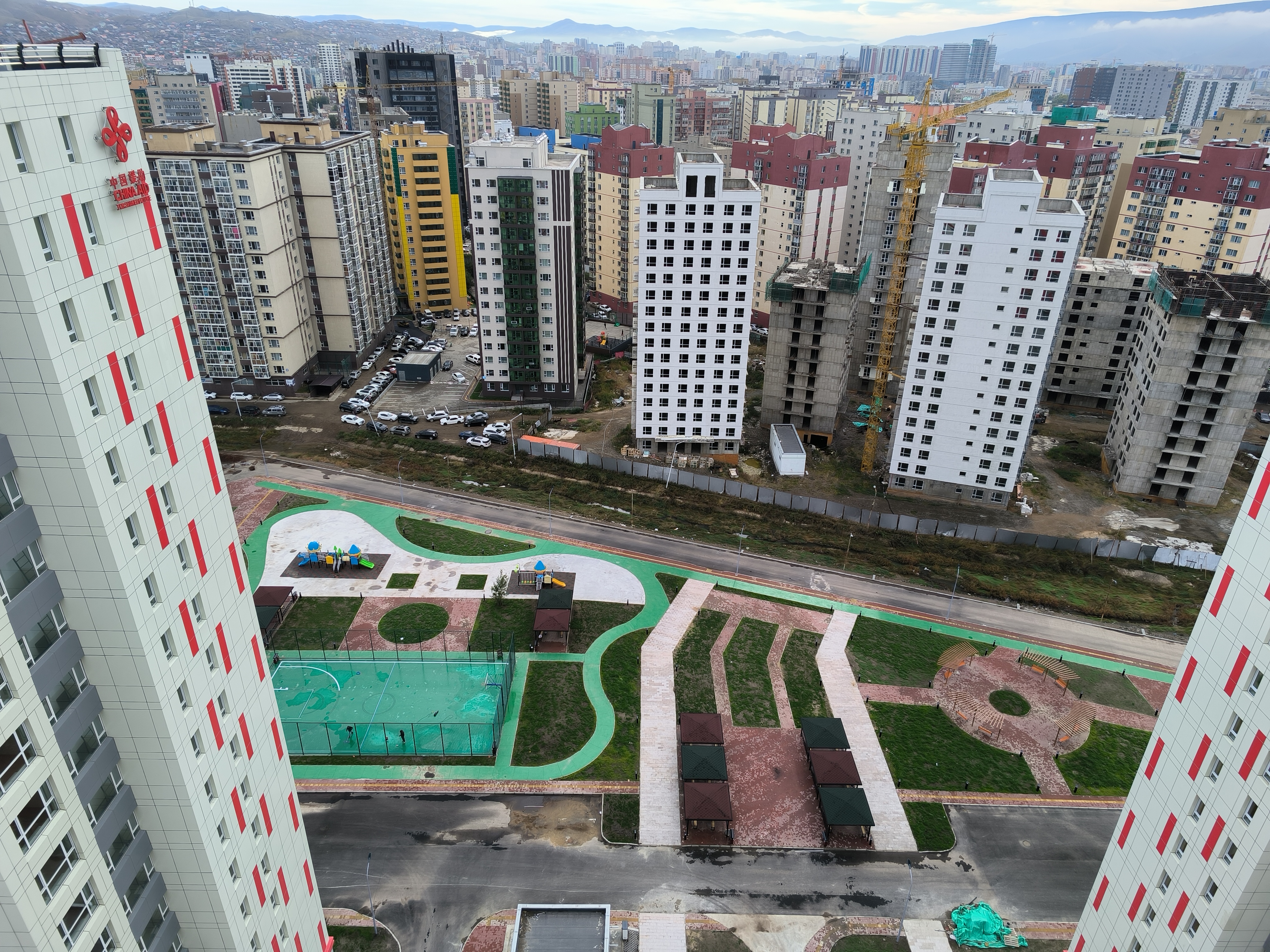 9月12日,中國二冶蒙古國棚戶區(qū)改造項目景觀綠化工程全面完成。