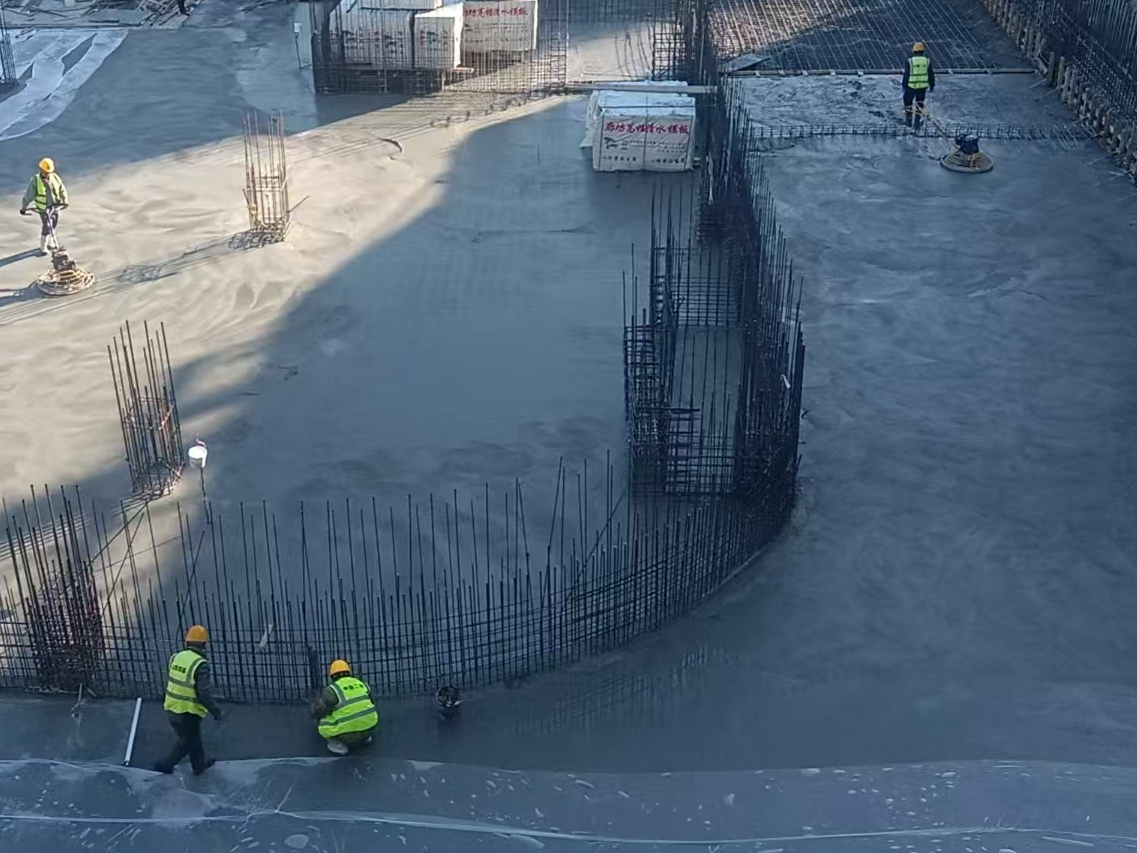 濟南姚家保障房項目位于山東省濟南市,屬于城中村改造類項目。項目占地約4萬平米,規(guī)劃建設1號-7號樓及地下車庫共8棟單體建筑,其中2號樓占地面積7200平方米。此次澆筑的筏板是2號樓A3區(qū)塊,面積為2050平方米,厚度50厘米且柱墩處厚度達1.2米。筏板是建筑的基礎承重結構,對保障房整體穩(wěn)定性至關重要。為確保澆筑工作高效有序推進,項目部重點落實三項核心舉措:一是嚴格遵循 “事前充分交底、事中精準控制、事后科學養(yǎng)護” 的全過程管理原則,采用分層分塊澆筑工藝,保障混凝土澆筑均勻密實,從技術層面筑牢工程質量根基;二是針對澆筑期間低溫天氣挑戰(zhàn)與連續(xù)施工需求,提前制定專項應對方案,通過鋪設保溫材料、科學調整混凝土配合比,規(guī)避低溫對混凝土強度的不利影響,同時前置辦理夜間施工許可手續(xù)、優(yōu)化資源調配方案,組織施工人員實行多班次輪班作業(yè),確保澆筑質量達標且過程不間斷;三是建立全流程管控機制,對混凝土供應、運輸環(huán)節(jié)實施動態(tài)監(jiān)控,由項目部管理人員與項目監(jiān)理人員共同對澆筑環(huán)節(jié)開展旁站監(jiān)督,全方位把控工程進度、質量與施工安全。經過全體參建人員 33 小時的連續(xù)奮戰(zhàn),首塊筏板澆筑工作按計劃順利完成,為后續(xù)主體結構施工奠定了堅實基礎。