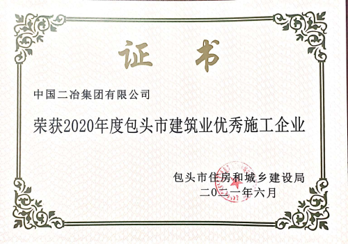 6月29日,包頭市住房和城鄉(xiāng)建設(shè)局(包住建建【2021】7號)公布了全市28家建筑業(yè)優(yōu)秀施工企業(yè)、66名優(yōu)秀建造師名單。中國二冶被授予“2020年度包頭市建筑業(yè)優(yōu)秀施工企業(yè)”榮譽稱號;甘肅分公司項目經(jīng)理張磊、鋼結(jié)構(gòu)分公司項目經(jīng)理田忠剛榮獲“2020年度包頭市優(yōu)秀建造師”榮譽稱號。