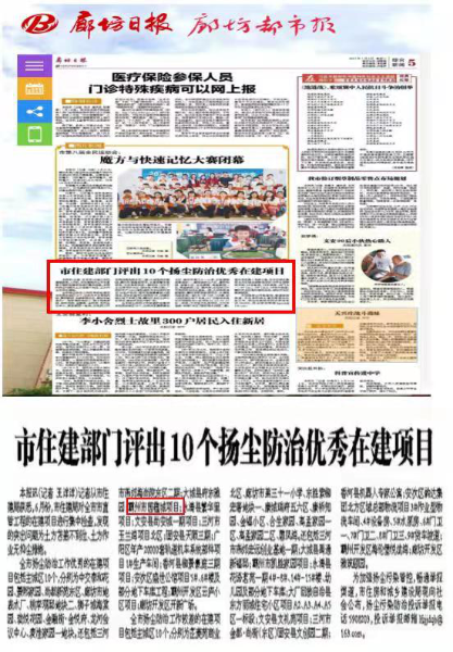 7月7日,從廊坊市住建局獲悉,中國二冶城建分公司河北霸州市國蘊(yùn)城項(xiàng)目榮獲廊坊市揚(yáng)塵防治優(yōu)秀在建項(xiàng)目。《廊坊日?qǐng)?bào)——綜合新聞》以題為《市住建部門評(píng)出10個(gè)揚(yáng)塵防治優(yōu)秀在建項(xiàng)目》進(jìn)行跟蹤報(bào)道,并進(jìn)行公布。