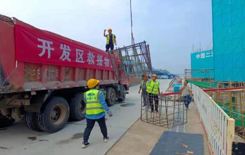 在這緊要關(guān)頭,中國二冶集團鶴壁項目部首當(dāng)其沖,積極響應(yīng)政府號召,迅速投入到落實防洪救災(zāi)工作,踐行央企社會責(zé)任。但持續(xù)強降雨也使得鶴壁項目部施工現(xiàn)場受災(zāi)嚴(yán)重,基坑被淹、機械設(shè)備被泡均無法使用,項目部當(dāng)機立斷購置支援所需的焊機、切割機等機具,克服種種困難第一時間組織工人制作鋼筋籠,為抗洪一線送去援助。