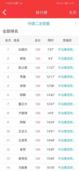 本次黨史知識(shí)競(jìng)賽,內(nèi)容涵蓋了習(xí)近平《論中國(guó)共產(chǎn)黨歷史》、《毛澤東、鄧小平、江澤民、胡錦濤關(guān)于中國(guó)共產(chǎn)黨歷史論述摘編》、《習(xí)近平新時(shí)代中國(guó)特色社會(huì)主義思想學(xué)習(xí)問答》、《中國(guó)共產(chǎn)黨簡(jiǎn)史》等黨史內(nèi)容。競(jìng)賽依托五礦智慧黨建app平臺(tái)進(jìn)行,競(jìng)賽共300道試題,包括單項(xiàng)選擇、多項(xiàng)選擇。在競(jìng)賽時(shí)間內(nèi)可以隨時(shí)參與答題。后臺(tái)會(huì)根據(jù)答題的正確率由高到低進(jìn)行排列,正確率相同的,將已答題用時(shí)進(jìn)行排序。在答題競(jìng)賽中,每位黨員積極思考,認(rèn)真答題,踴躍參與,不少黨員紛紛表示,通過這個(gè)知識(shí)競(jìng)賽,使黨史、黨章、黨規(guī)都印在腦海里,理解也深刻。希望公司今后能多舉辦類似活動(dòng),提升黨員政治理論知識(shí)與黨員思想覺悟能力,爭(zhēng)做優(yōu)秀共產(chǎn)黨員。本次黨史知識(shí)競(jìng)賽活動(dòng),公司共有1560名黨員干部踴躍參加,經(jīng)過激烈角逐,來自四川分公司的白國(guó)光以7分47秒的優(yōu)異成績(jī)?nèi)〉脻M分,獲得本次競(jìng)賽活動(dòng)的一等獎(jiǎng);來自市政分公司的郭俊等5名黨員獲得二等獎(jiǎng);來自華東分公司的王成軍等10名黨員獲得三等獎(jiǎng);來自甘肅分公司的高國(guó)義等30名黨員獲得優(yōu)秀獎(jiǎng)。