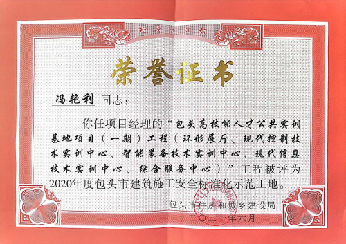 實(shí)訓(xùn)基地項(xiàng)目先后獲評(píng)中冶安全文明標(biāo)準(zhǔn)化工地、內(nèi)蒙古綠色建筑工地、“中施企協(xié)綠色建造評(píng)價(jià)”二星等多個(gè)安全文明類獎(jiǎng)項(xiàng),同時(shí)在2020年7月份組織的中國(guó)二冶集團(tuán)內(nèi)蒙古自治區(qū)片區(qū)“安全文明標(biāo)準(zhǔn)化”觀摩活動(dòng)中獲得當(dāng)?shù)卣c集團(tuán)公司的一致好評(píng)。