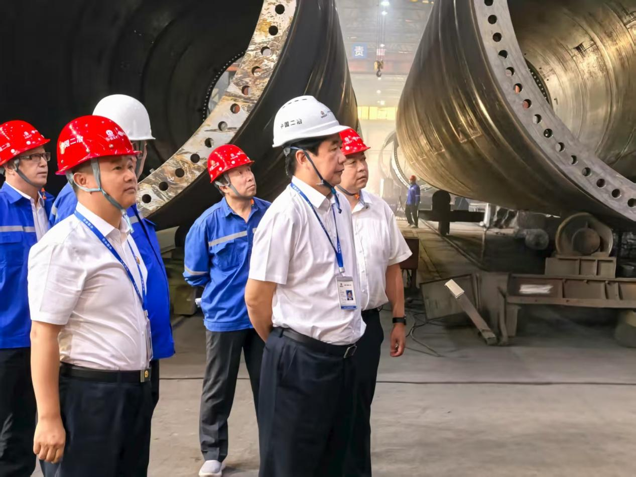 調(diào)研過(guò)程中,徐永鋒首先深入生產(chǎn)一線,詳細(xì)了解當(dāng)前生產(chǎn)進(jìn)度、設(shè)備運(yùn)行狀態(tài)及人員配置情況,重點(diǎn)就風(fēng)電塔筒在成本控制、資源高效利用等方面的具體舉措進(jìn)行了解。