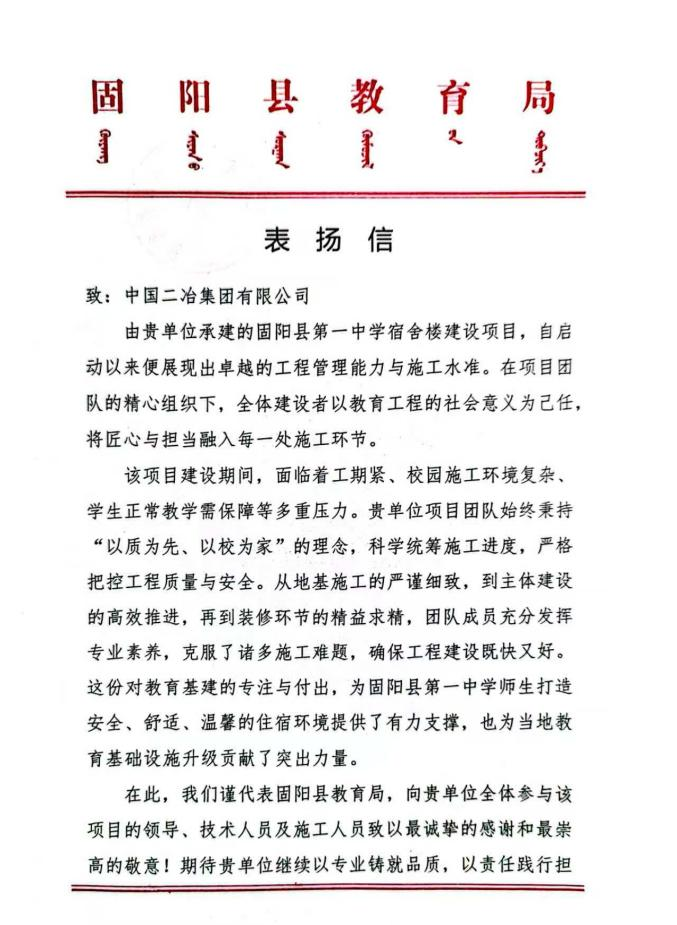 此次表?yè)P(yáng)信不僅是對(duì)項(xiàng)目團(tuán)隊(duì)的認(rèn)可,更是對(duì)中國(guó)二冶品牌實(shí)力的彰顯。公司將繼續(xù)傳承“堅(jiān)韌不拔,勇攀高峰”的精神,在民生工程與教育基建領(lǐng)域持續(xù)發(fā)力,以專(zhuān)業(yè)能力踐行社會(huì)責(zé)任,為城市的發(fā)展建設(shè)貢獻(xiàn)力量。